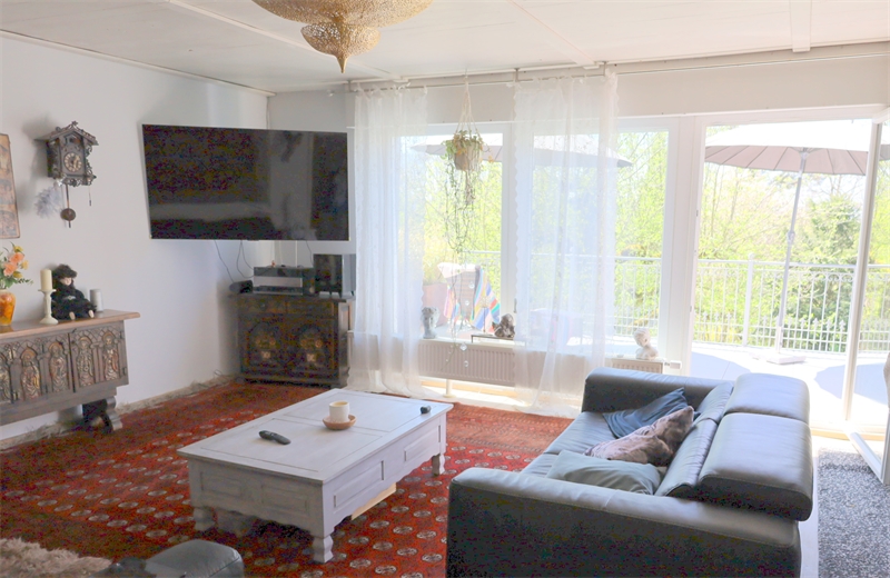 ca.151,85 m² Wohnfläche auf 2 Ebenen zur Verfügung. Die Wohnung im Erdgeschoss verfügt über 4 Zimmer und einen wunderschönen Kaminofen im Wohn-/Essbereich. Große, bodentiefe Fensterfronten lassen viel Licht in jeden Raum. Von 3 der 4 Zimmer haben Sie jeweils einen Ausgang auf den wunderschönen, sonnigen, nach Süden ausgerichteten Balkon (zum Teil überdacht) mit Blick in den schönen großen Garten. Das Badezimmer auf dieser Ebene wurde vor einigen Jahren liebevoll renoviert. Vom Flur erreicht man über eine Holztreppe die 4 Zimmer und das Duschbad im Terrassengeschoss. Diese geräumigen Zimmer verfügen alle über große Fensterfronten und lassen viel Licht und Helligkeit in alle Räume. Das Duschbad auf dieser Ebene rundet das Bild vom gemütlichen Wohnen ab. Des Weiteren befindet sich auf dieser Ebene des Gebäudes noch ein Waschmaschinenraum sowie ein Kellerraum.