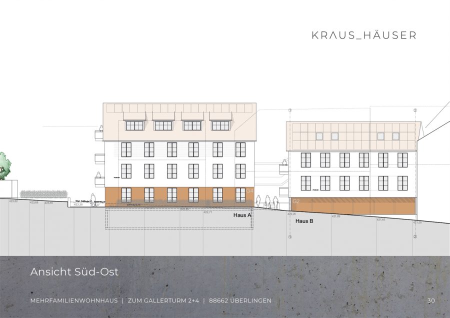 Sattel-/Flachdach, Sichtbeton und tragender Konstruktion der Balkone klare Kontraste und Strukturen. Innen eröffnen sich großzügige Wohnungen mit viel Platz, Luft und Licht.